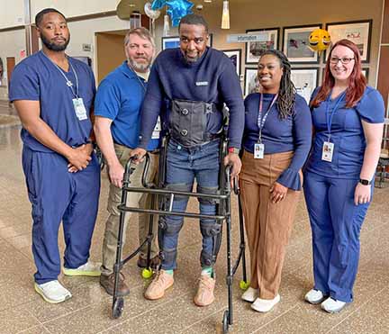 Williams was fitted for his exoskeleton unit in 2024. Over the past five months, the technology has been part of his every VA rehabilitation visit and is periodically used outside of VA. Birmingham VA has trained his CrossFit coach and family members to assist with using the Exoskeleton when away from the VA facility.