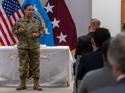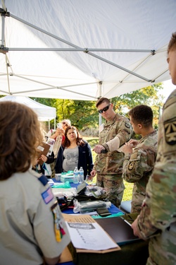 U.S. Army Staff Sgt. Codey Rouse (left) and U.S. Army Sgt. Anthony Goclawski (right) from the Walter Reed Army Institute of Research demonstrate banda…