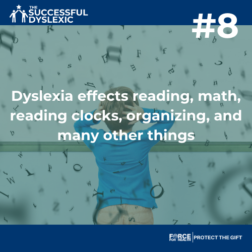 #8 Dyslexia effects reading, math, reading clocks, organizing, and many other things