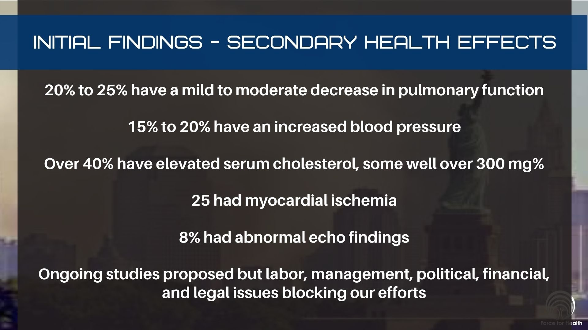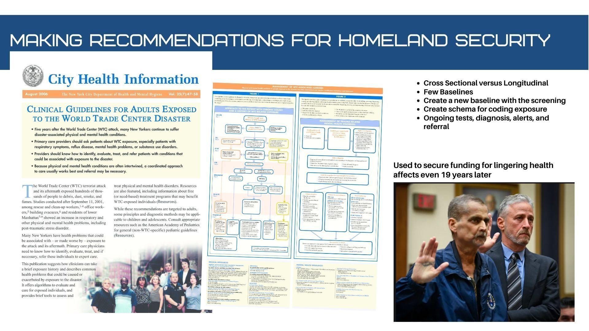 Planning to create the World Trade Center registry and get funds from Sen. Clinton for long term follow up