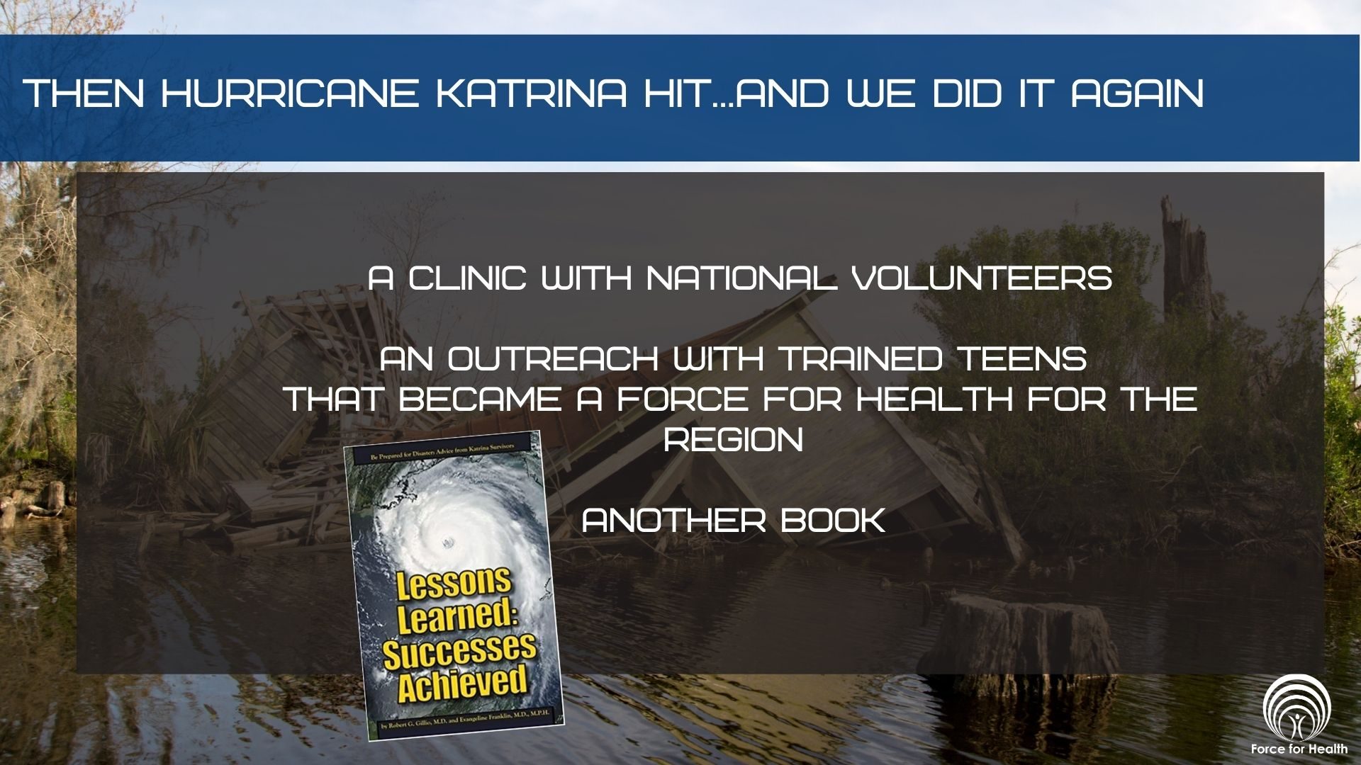 Suddenly, I am viewed as an expert disaster response, anthrax, telemedicine, and database registries. I didn't wait for permission, I acted"