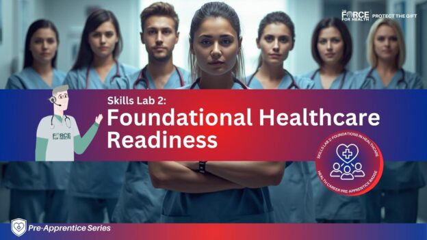 The Force for Health Network Pre-Apprentice Skills Lab prepares learners ages 14–24 for healthcare education and workforce pathways by developing foundational, non-clinical competencies. The curriculum emphasizes personal readiness, communication, teamwork, professionalism, safety awareness, care navigation support, and career readiness.