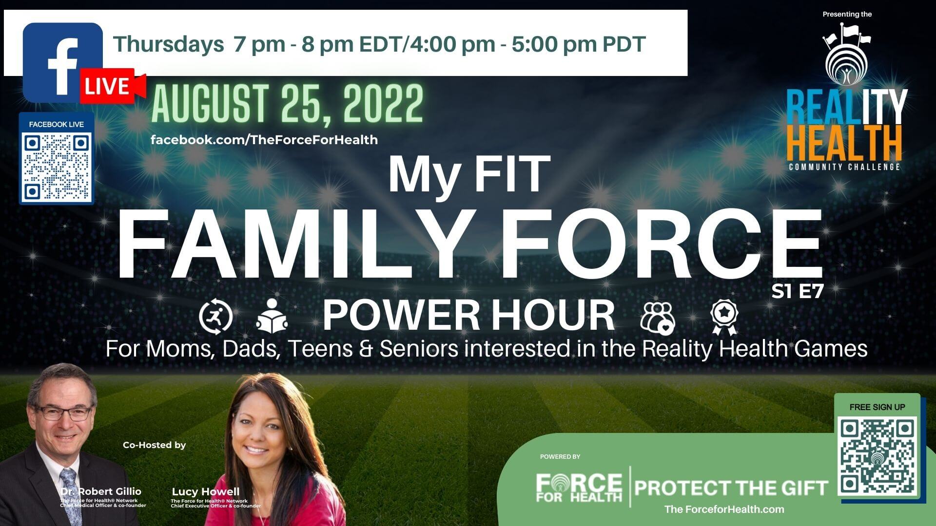 Join us for My Fit FamilyFORCE Power Hour, a special, weekly 10 part Summer Health Series for moms, dads, teens and seniors who are interested in playing as a TEAM in the upcoming Reality Health Games premiering this fall.
