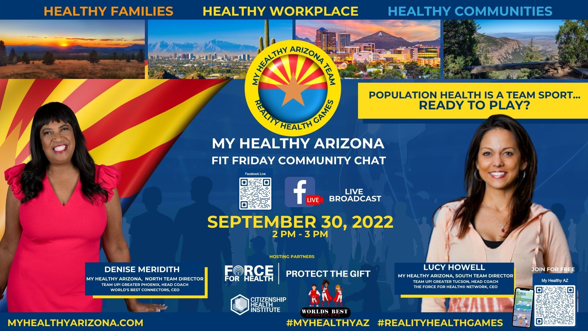 Co-hosted by Lucy Howell, The Force for Health®, CEO and Lead Coach for My Healthy Arizona’s South Region Teams, and Denise Meridith, World’s Best Connectors, CEO and Lead Coach for My Healthy Arizona North Region Teams.