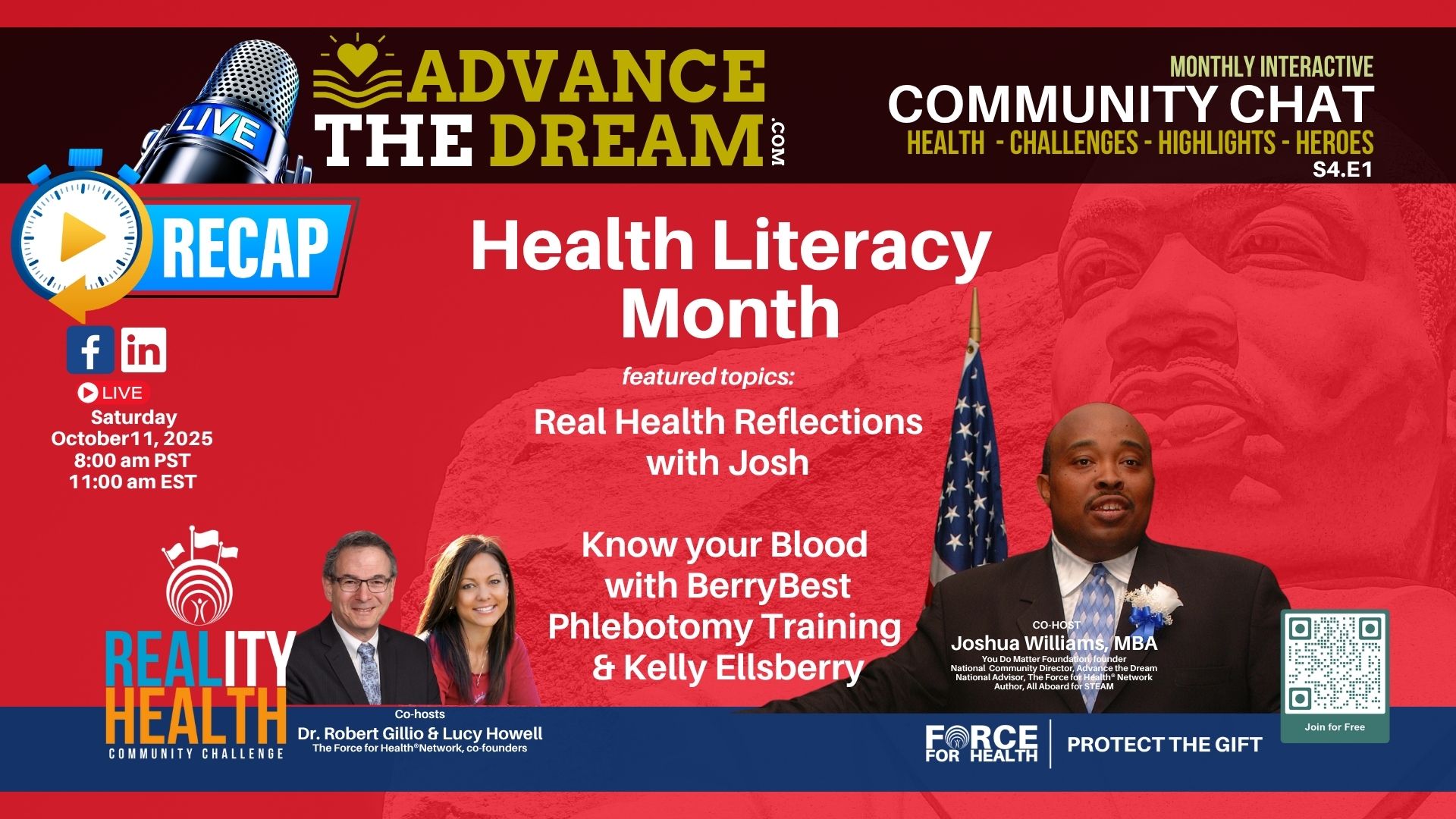 Advance the Dream LIVE RECAP: Season 4 Premiere — Health Literacy Month & Real ReflectionsBy Lucy Howell, Co-Founder, The Force for Health® Network Season 4 Premiere — A Return with Purpose Our Season 4 premiere of Advance the Dream…
