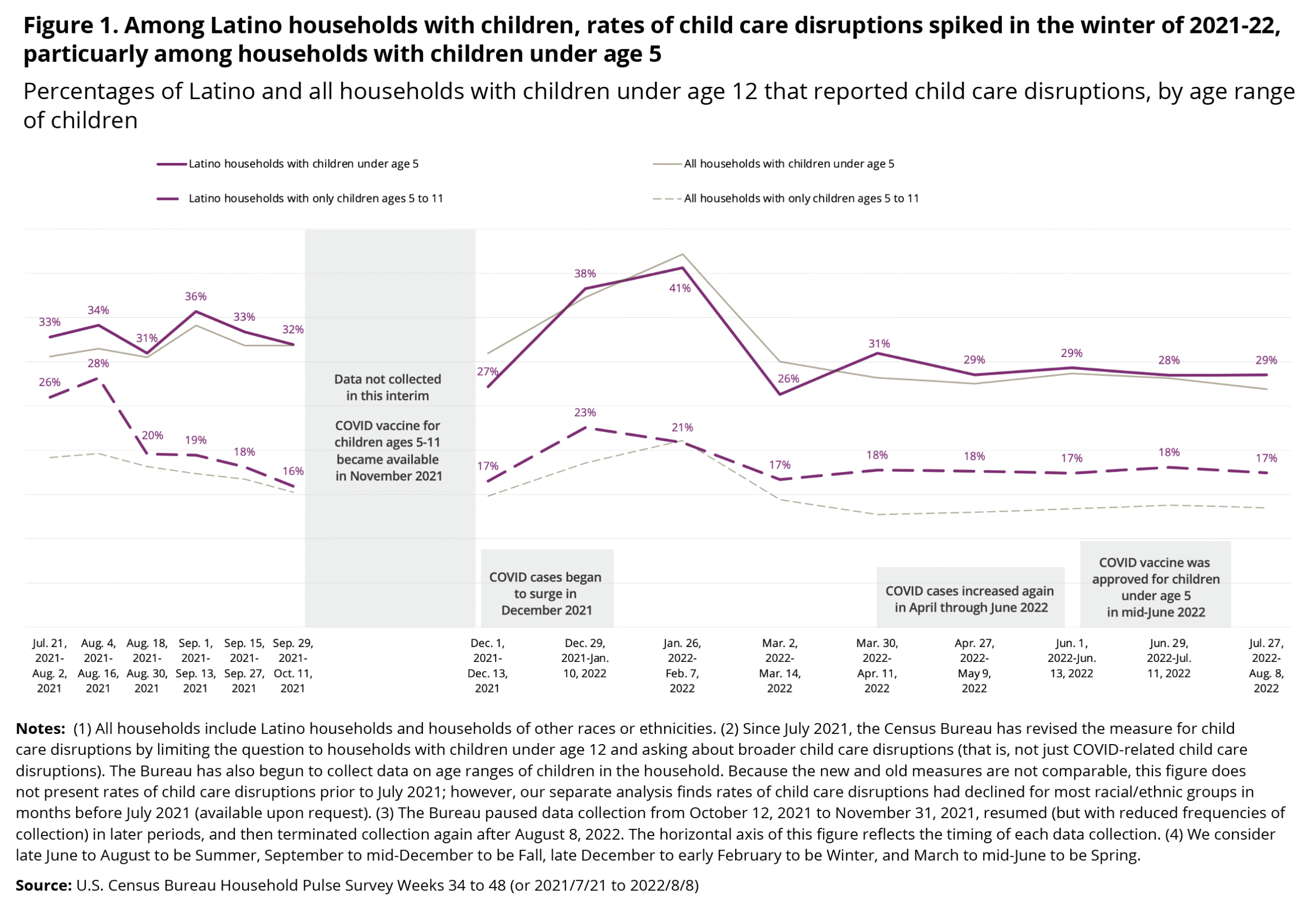 Latino Families Still Facing Childcare Disruptions Due to COVID-19Latino families with children are still experiencing COVID-19 pandemic-related disruptions to their childcare arrangements, according to a new data analysis from the National Research Center on Hispanic…