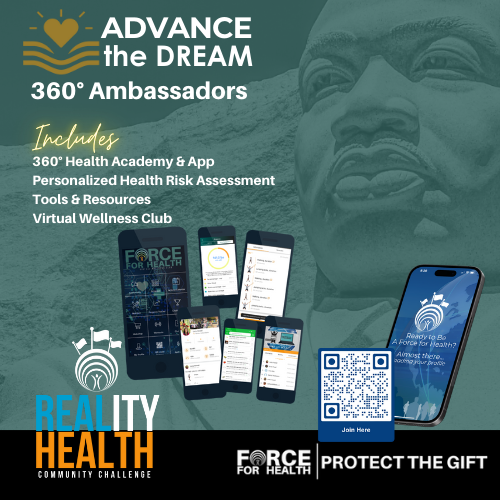 Welcome to Advance the DREAM 360° Ambassadors, where you can help yourself be a better force for health, so you can better help others. This is part of our Reality Health Game Series where members can participate in LEARN It, LIVE It and SHARE It Challenges over a specific season of play, and earn points, badges, recognition and even be eligible for prizes as you move through the journey.