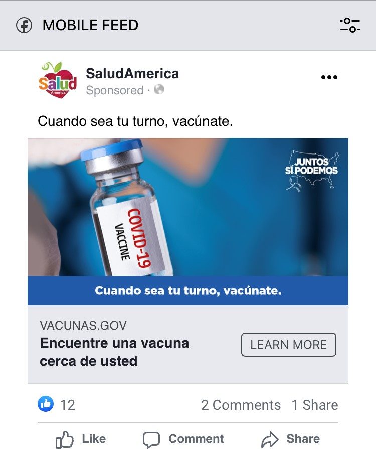 Compared to generic vaccine promotion ads from the CDC, the Latino peer model ads yielded a significantly higher rate of link clicks on Facebook to “find a vaccine near you,” according to a new study in the journal Health Education Research .