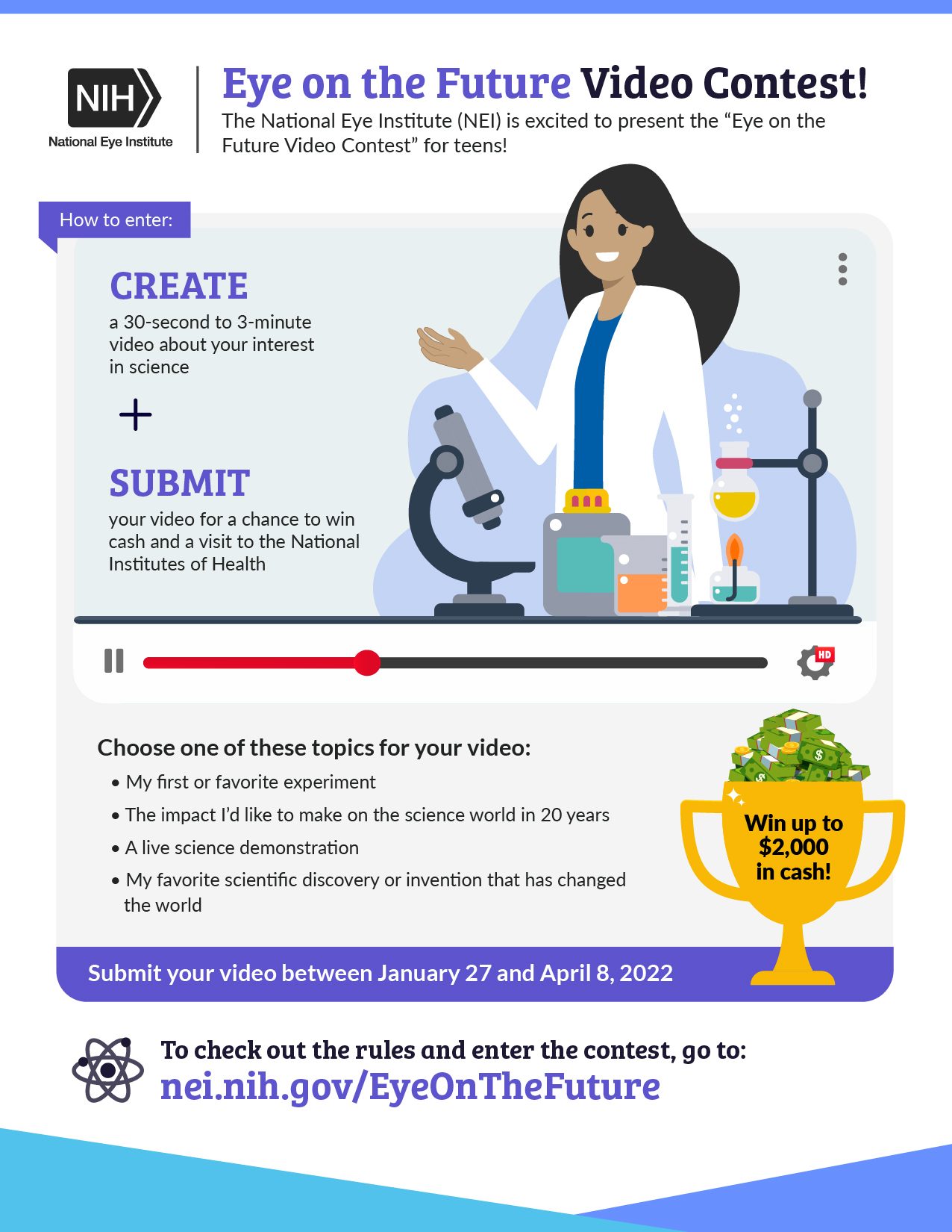 “Winners will get cash prizes — to to $2,000 — plus the opportunity to visit the National Institutes of Health for a day,” according to the National Eye Institute, part of the National Institutes of Health.